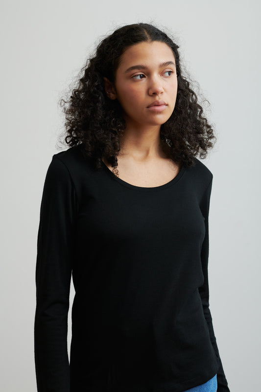 Ethical Wool Scoop Neck Top - Scandi Blue