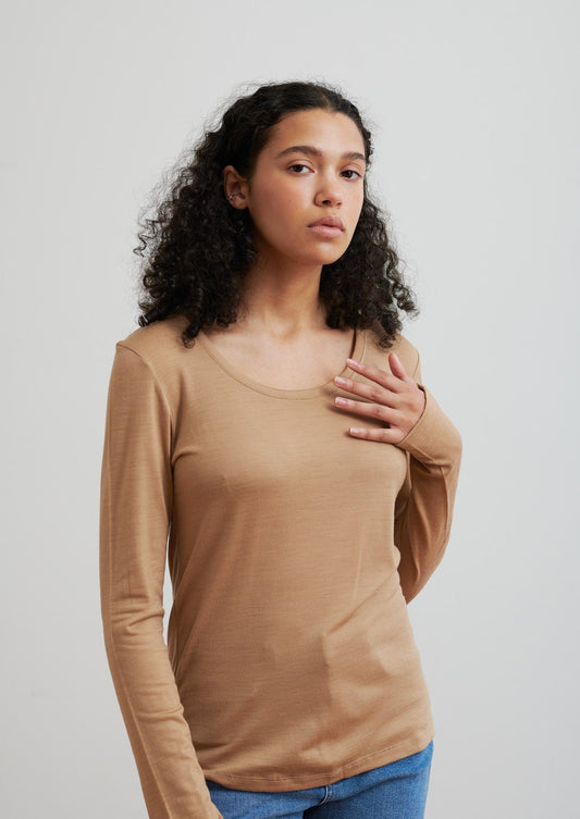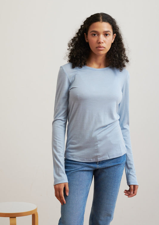 Ethical Wool Scoop Neck Top - Scandi Blue